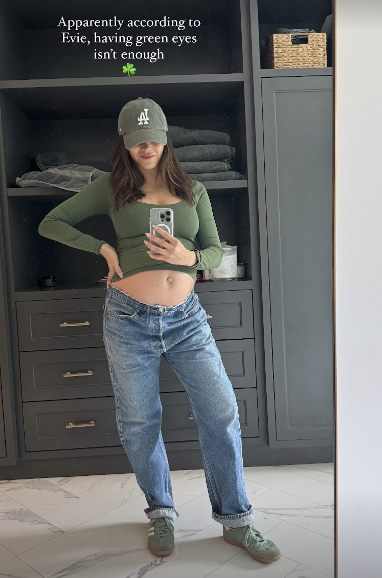 Dewan shared a mirror selfie, sporting a green long-sleeve cropped top, jeans, and green shoes with a green baseball game. "Apparently, according to Evie, having green eyes isn't enough," she wrote, referring to her and Channing Tatum's 10-year-old daughter.Courtesy of Jenna Dewan/Instagram